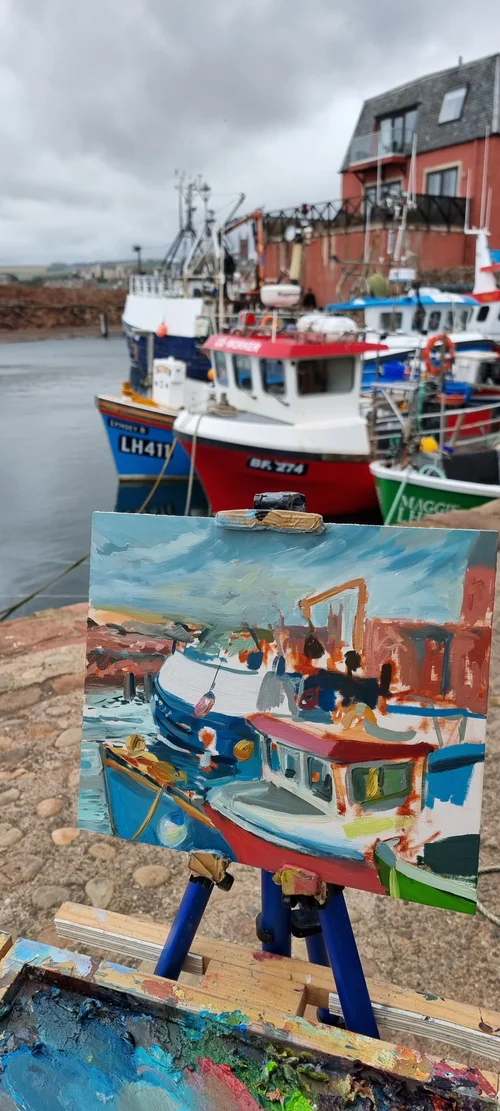 Pulling in the Nets, Cromwell Harbour, Dunbar SOLD